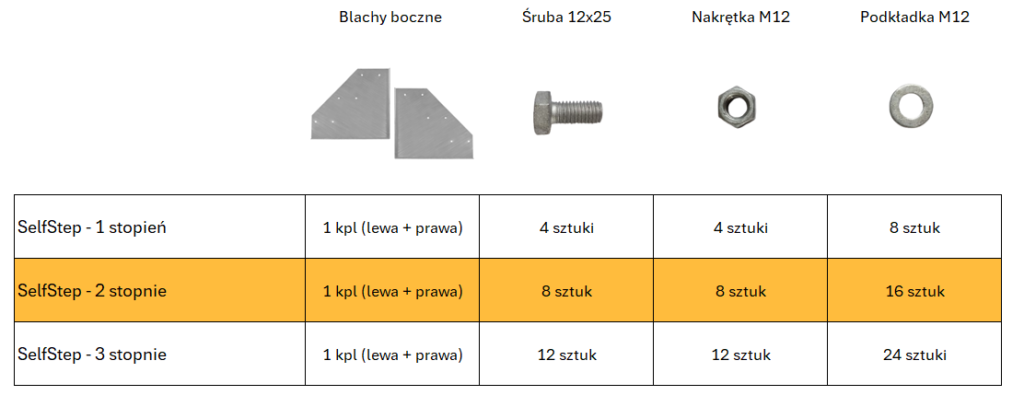 Skład kompletu SelfStep od 1 do 3 stopni