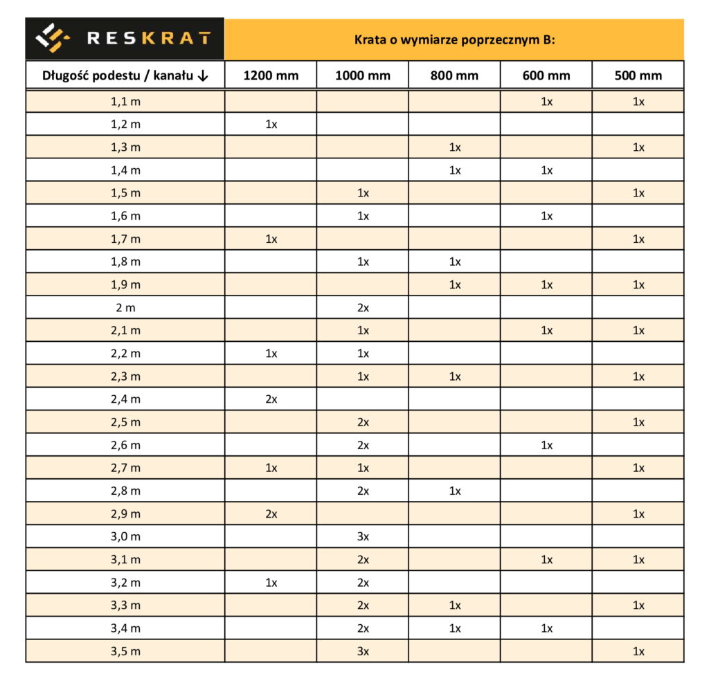 Sprawdź ile i jakich krat potrzebujesz do pokrycia kanału lub podestu o danej długości.